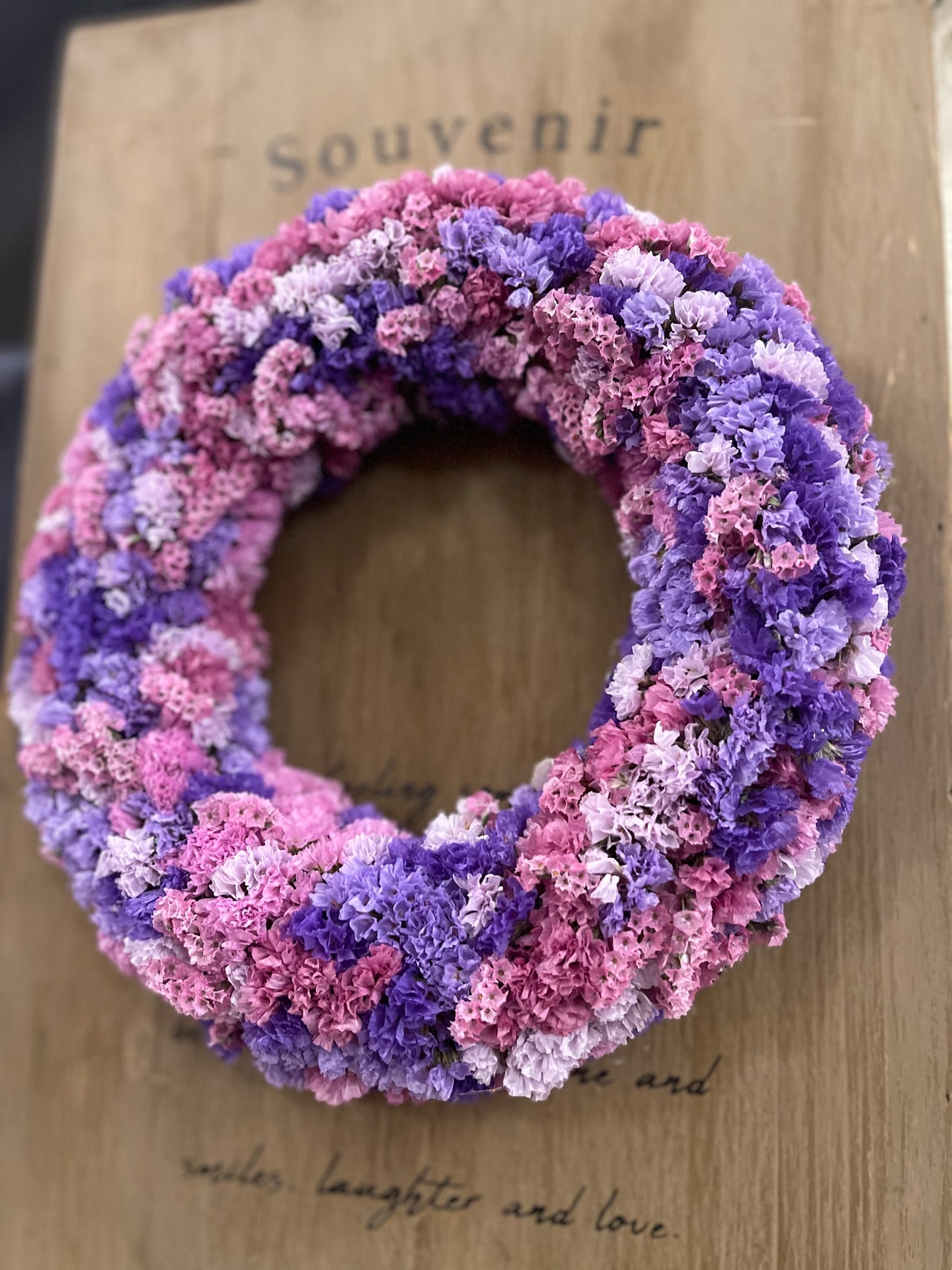 スターチスのグラデーションリースは、4種類のスターチスを細かく配置した緻密で美しいデザインが魅力のアイテムです。